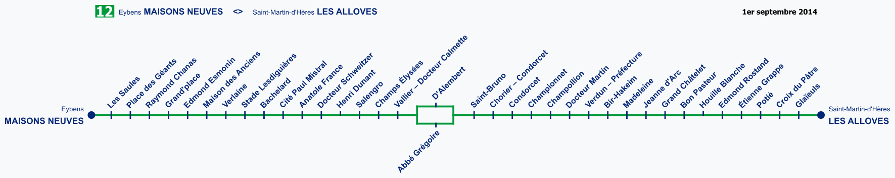 En raison des travaux d'augmentation du gabarit du souterrain Malakoff/Valmy, la ligne 12 est scindée en deux tronçons indépendants : Eybens Maisons Neuves <> Verdun – Préfecture et Chavant <> Saint-Martin-d'Hères Les Alloves.