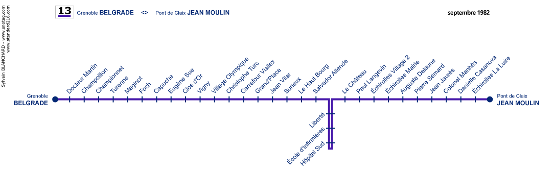 La ligne 13 passe par la rue Lesdiguières et le boulevard Agutte Sembat dans les deux sens. Elle abandonne l'avenue Félix Viallet, le boulevard Gambetta et la rue Lakanal. Dode et Lieutenant Chanaron sont supprimés. La boucle de retournement de son terminus Belgrade passe par la rue de Palanka.