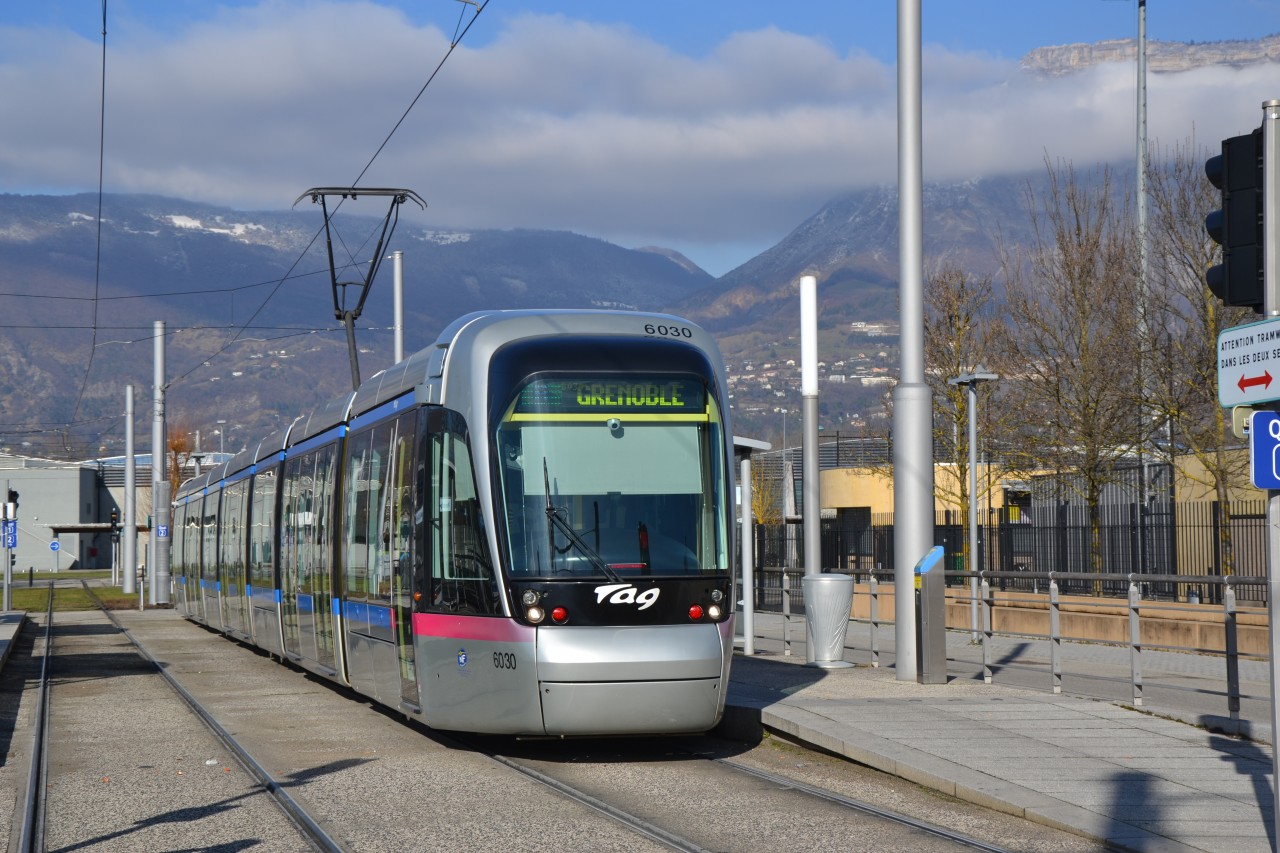 Le Citadis 402 n°6030 régule au terminus Gières Plaine des Sports de la ligne B.